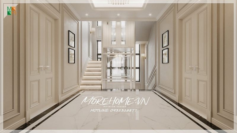 Gợi ý thiết kế hành lang tầng cho chung cư, nhà phố, biệt thự với phong cách tân cổ điển sang trọng