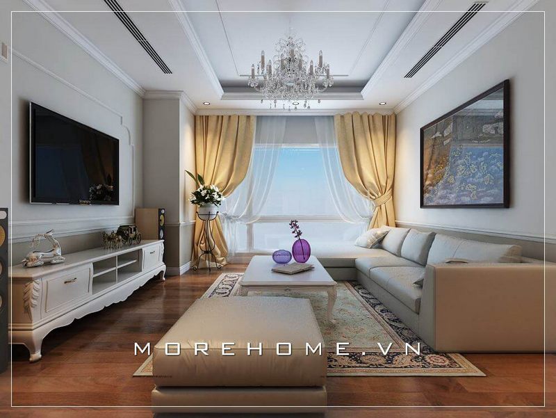 Không gian căn phòng được tôn lên giá trị thẩm mỹ bởi phòng khách biệt thự được thiết kế theo phong cách tân cổ điển đẹp, sang trọng.