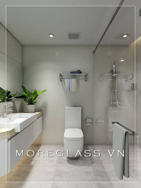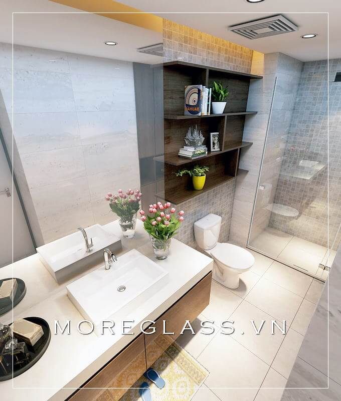 Mẫu thiết kế phòn tắm chung cư nhỏ đẹp kết hơp gạch ốp màu trắng trang nha giúp không gian căn phòng rộng rãi hơn