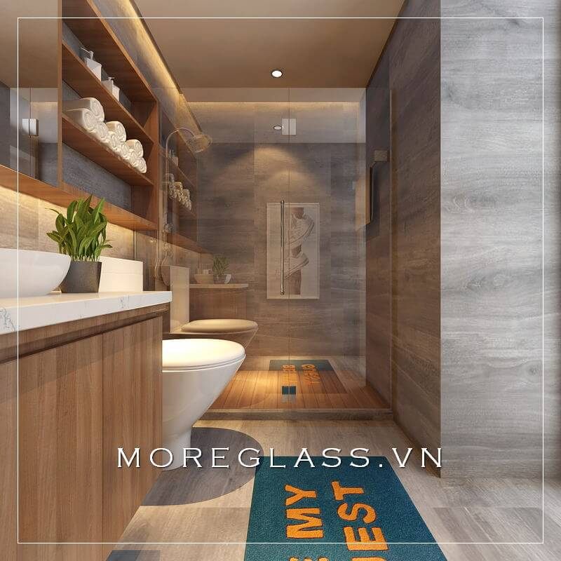 Mẫu thiết kế nhà tắm và nhà vệ sinh cao cấp với kệ tủ trang trí, kệ tủ lavabo đơn giản, hiện đại cùng thiết bị vệ sinh, phòng tắm kính đẹp.