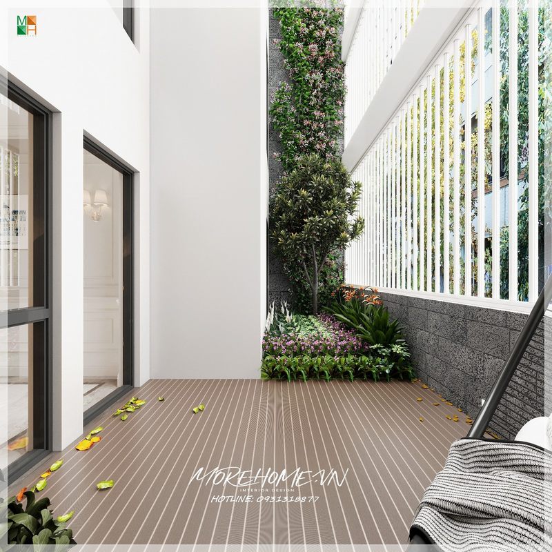 Không gian được trồng nhiều cây cảnh, hoa lá đem tới một bầu không khí thanh mát trong lành